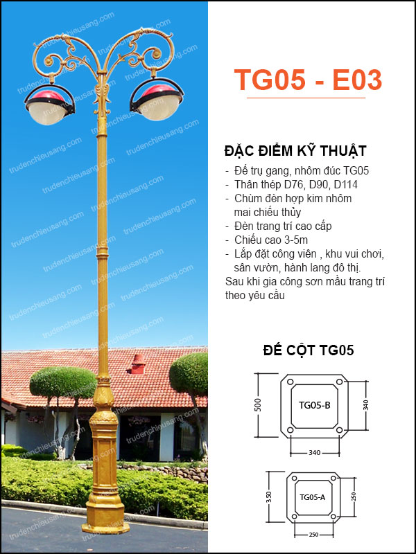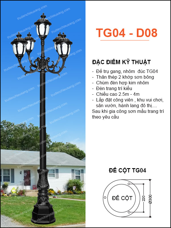 Quy chuẩn cột đèn chiếu sáng sân vườn truyền thống: