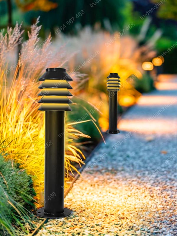 Cột đèn chiếu sáng lối đi sân vườn được thiết kế với thân trụ thấp, chiều cao thông dụng từ 40cm đến 100cm. Các mẫu đèn chiếu sáng lối đi sân vườn hay còn được gọi là đèn nấm sân vườn hoặc đèn bollard.