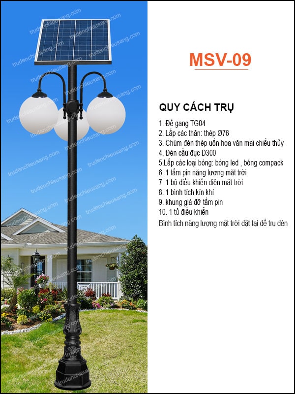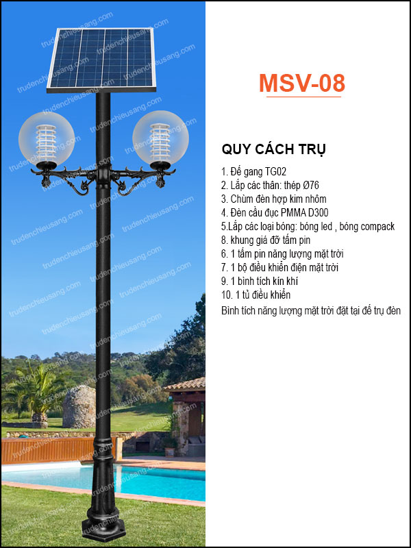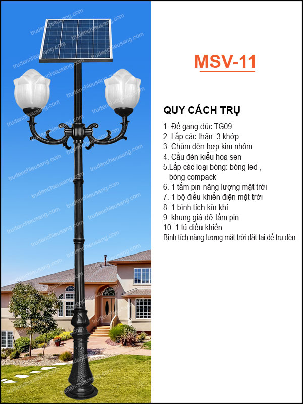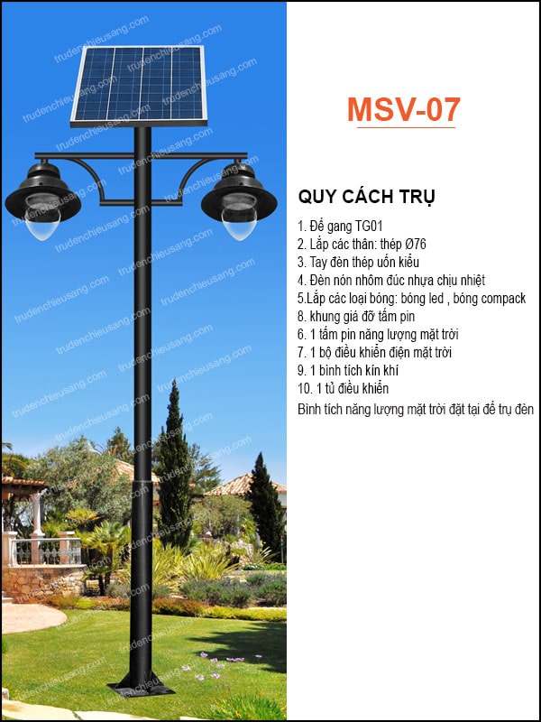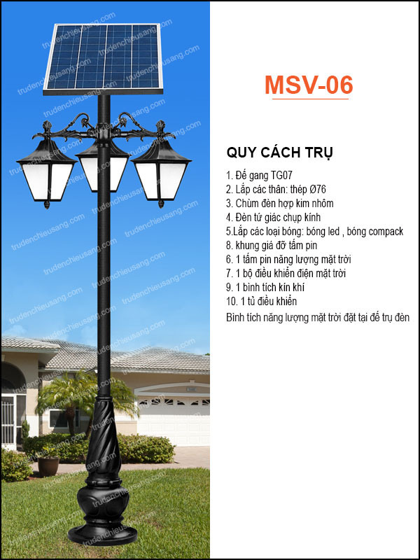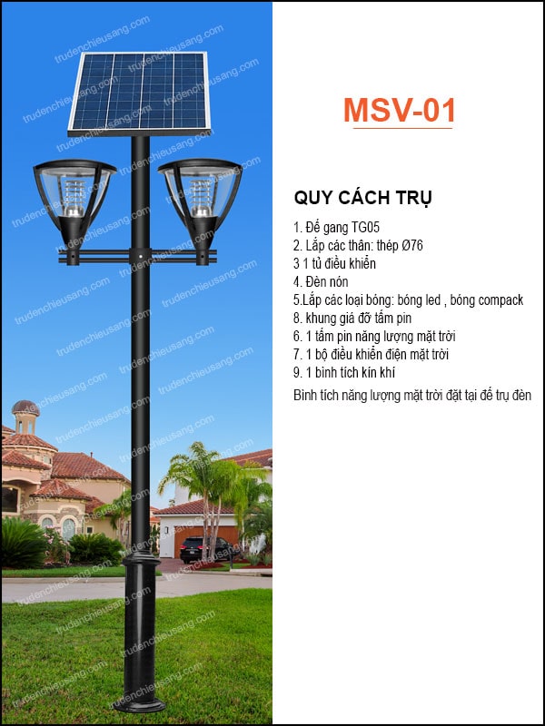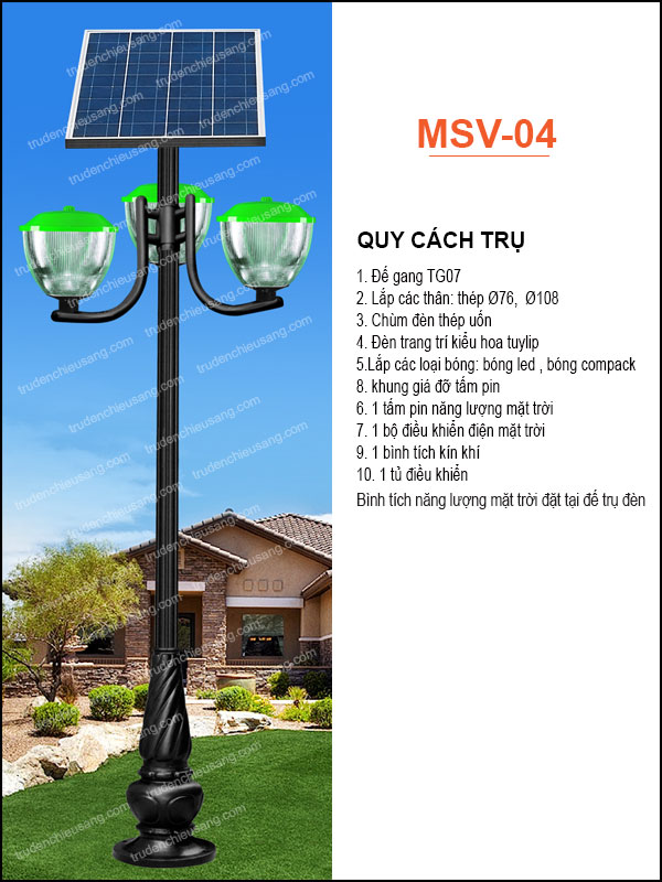- Cột đèn: Làm bằng chất liệu bền, chịu được mọi điều kiện thời tiết.