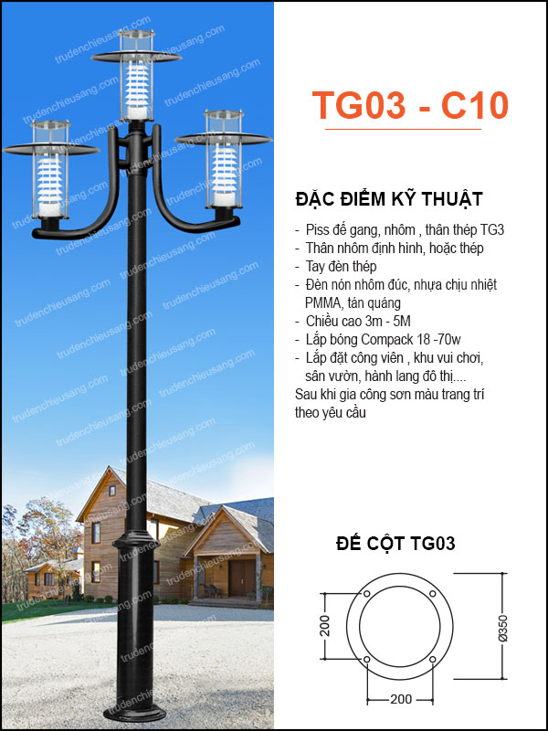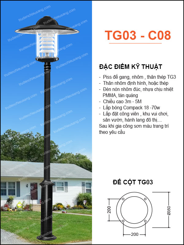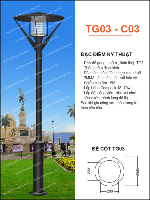 Trụ đèn Sân Vườn TG03-C07 – Trụ Đèn Chiếu Sáng Sân Vườn